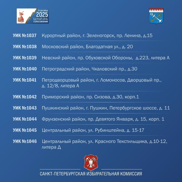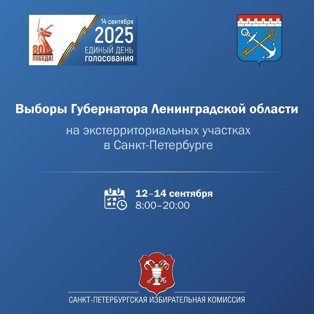 Голосование пройдет в течение трёх дней — с 12 по 14 сентября 2025 года. Все участки будут открыты ежедневно с 8:00 до 20:00. В Выборгском районе экстерриториальный участок № 1031 расположен по адресу: ул. Смолячкова, д.13.