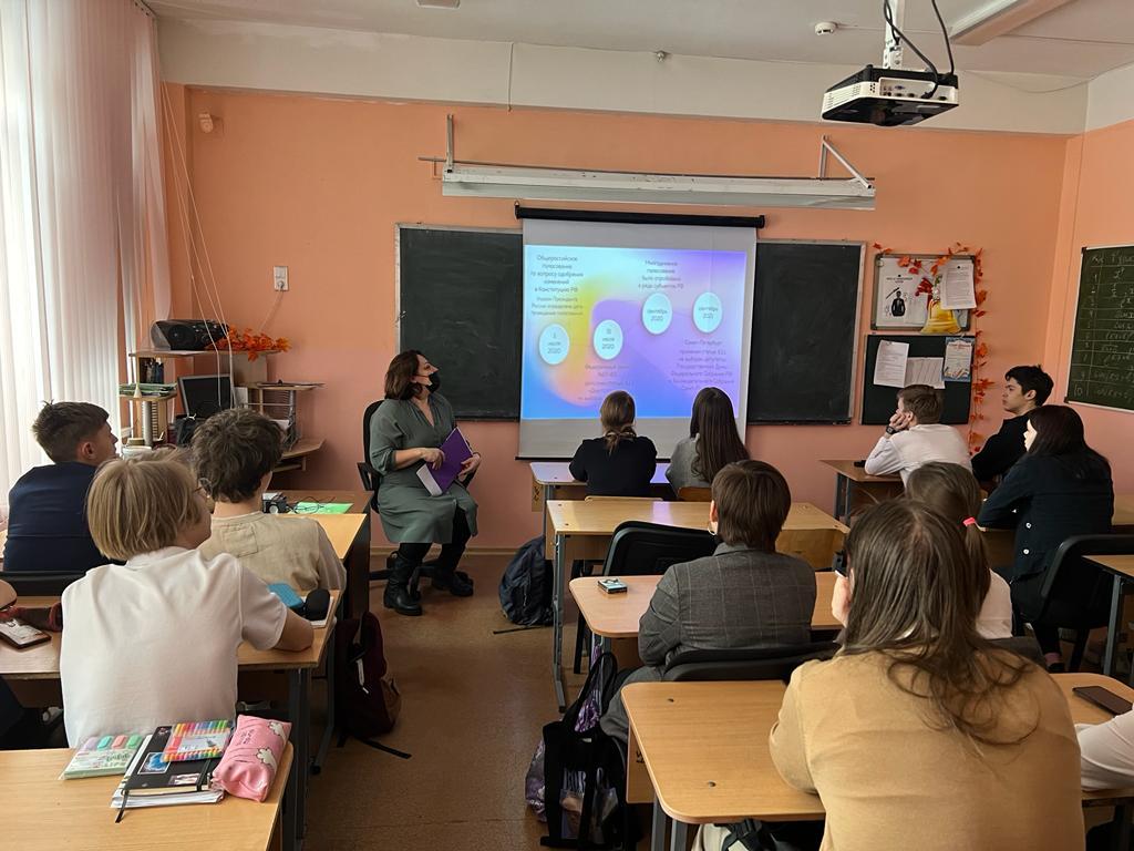 В течении недели с 16 по 19 ноября 2020 года в школах выборгского района города Санкт-Петербурга для учащихся 10-х и 11-х классов проводили демонстрацию видеоурока на тему «Конституционная реформа-2020 в Российской Федерации», снятого председателями Территориальных избирательных комиссий №34,35,36.