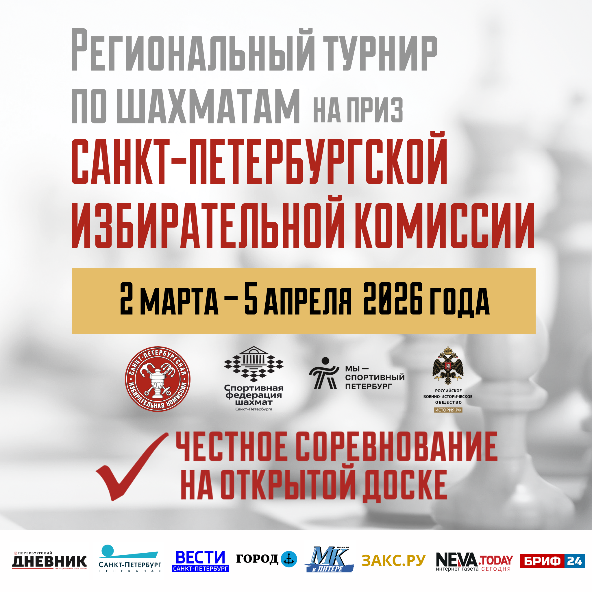 Региональный шахматный турнир на приз Санкт-Петербургской избирательной комиссии пройдет со 2 марта по 5 апреля 2026 года